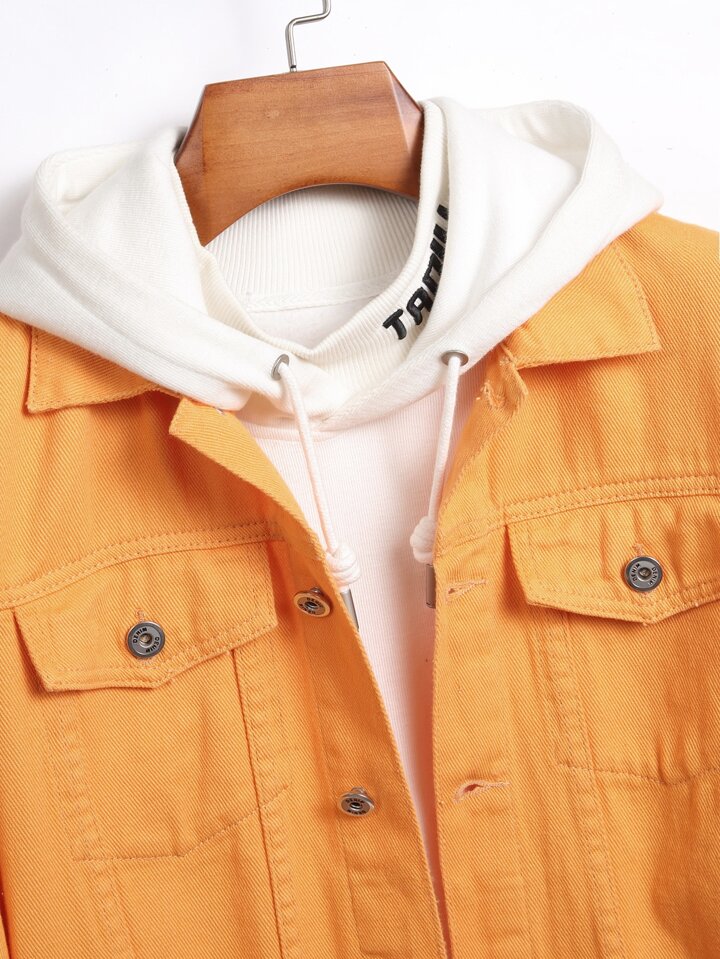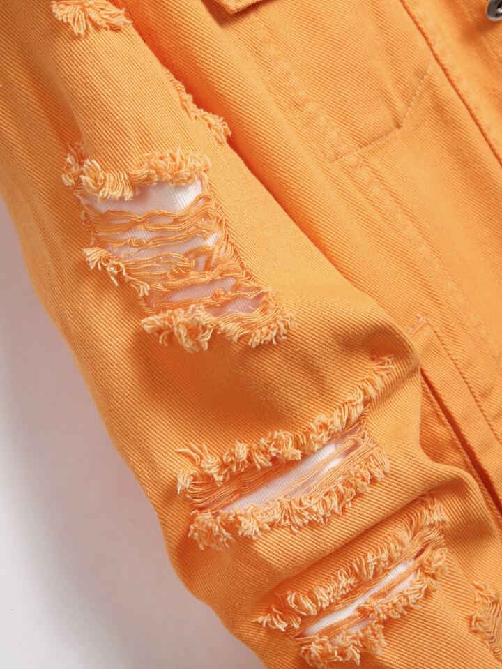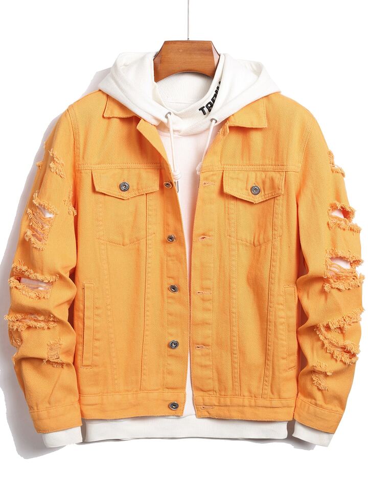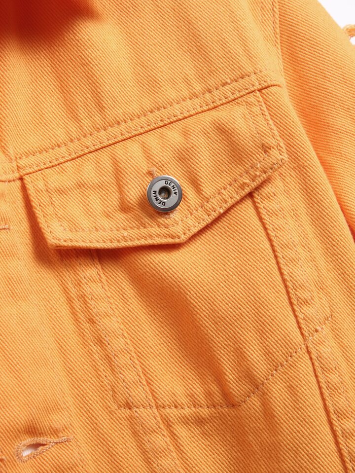 Guys 1pc Ripped Flap Pocket Denim Jacket