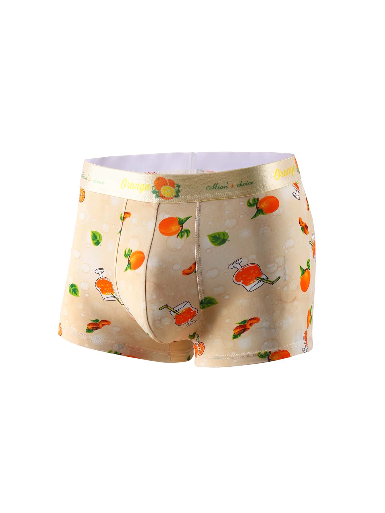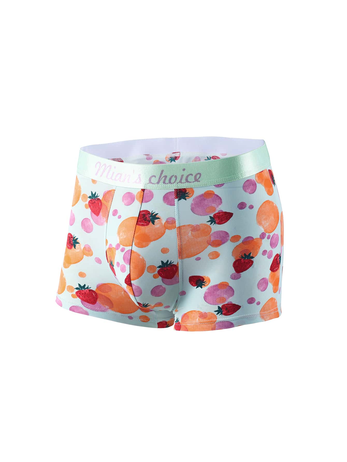 Guys 5pcs Fruit Print Letter Tape Waist Boxer Brief