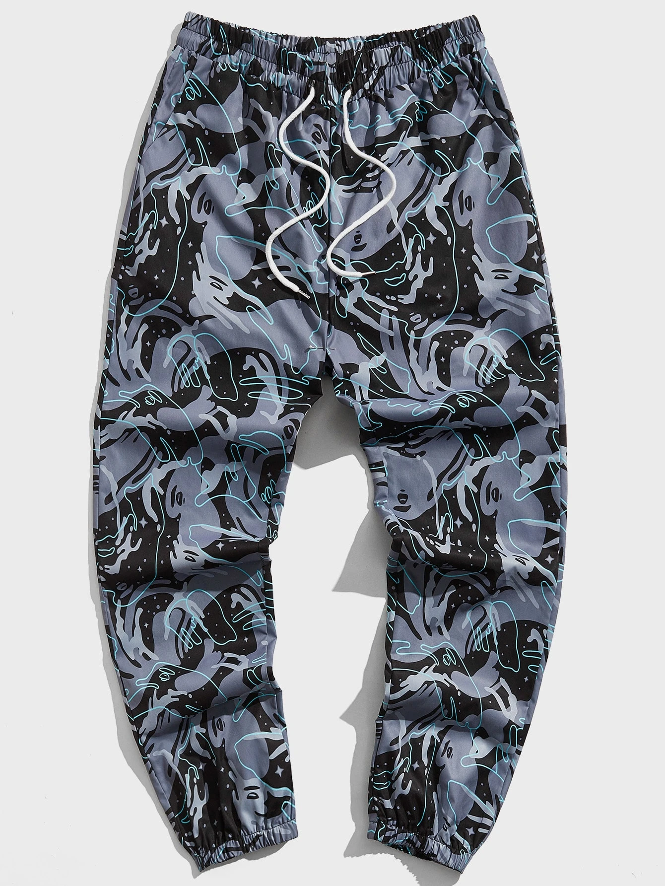 Guys Allover Print Drawstring Waist Pants