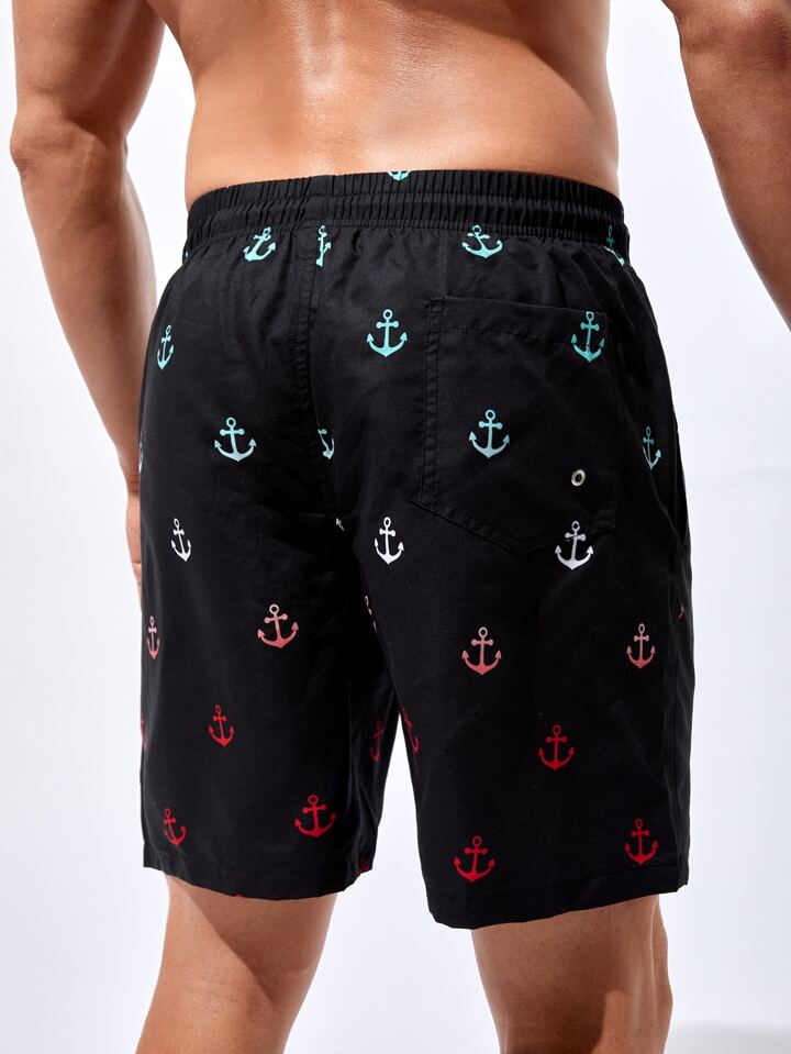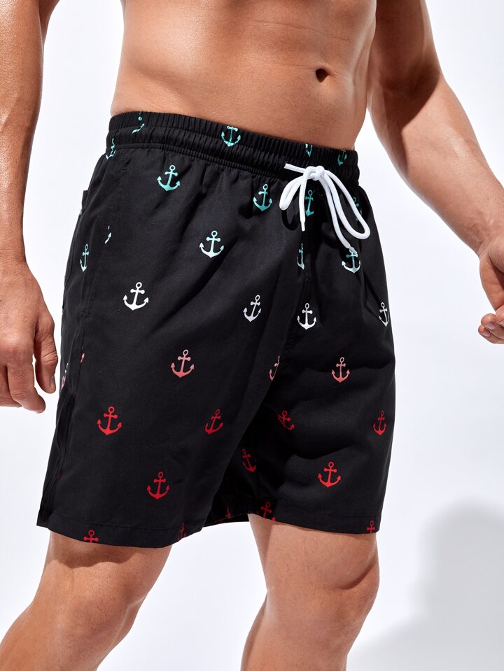 Guys Anchor Print Drawstring Waist Swim Trunks