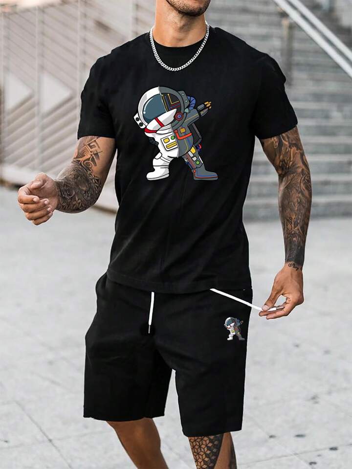 Guys Astronaut Print Tee & Drawstring Waist Shorts Set