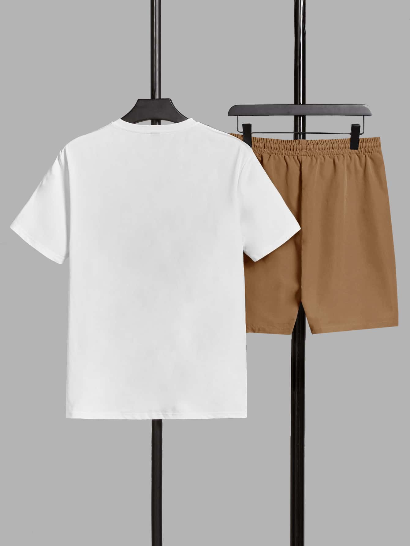 Guys Bear & Letter Graphic Tee & Drawstring Waist Shorts