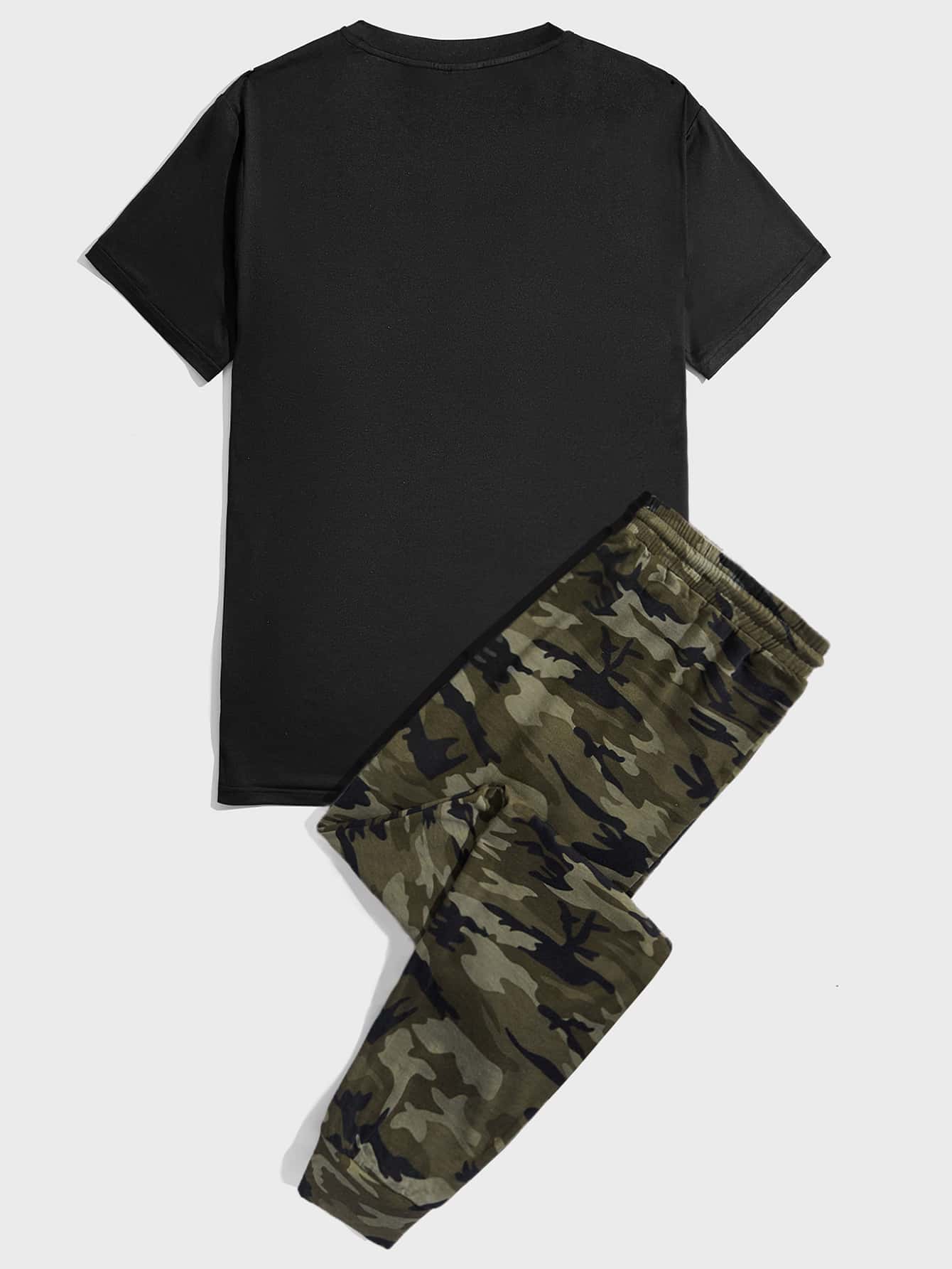 Guys Camo Print Patched Detail Tee & Drawstring Waist Sweatpants