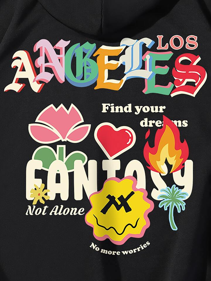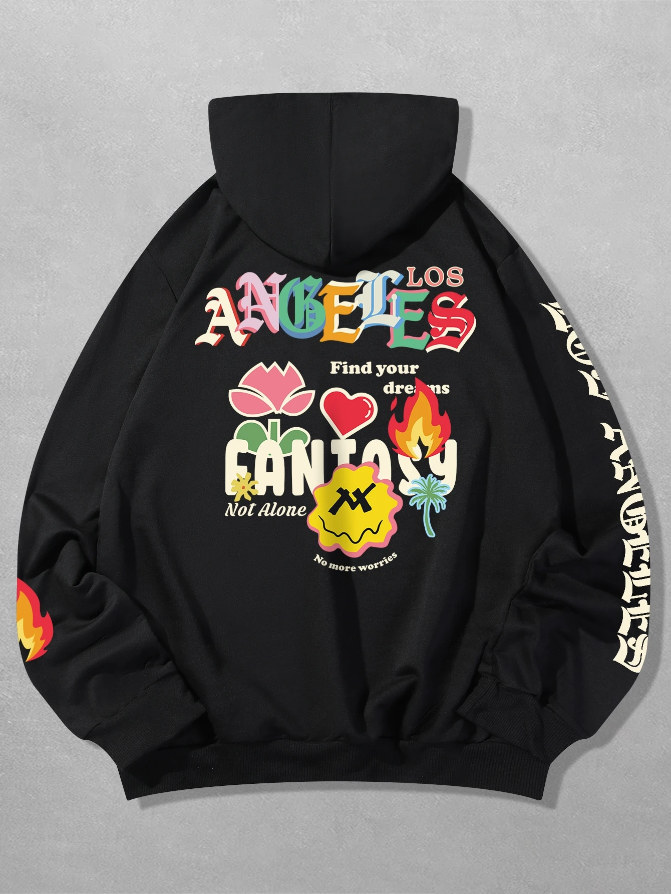 Guys Cartoon & Slogan Graphic Drawstring Hoodie