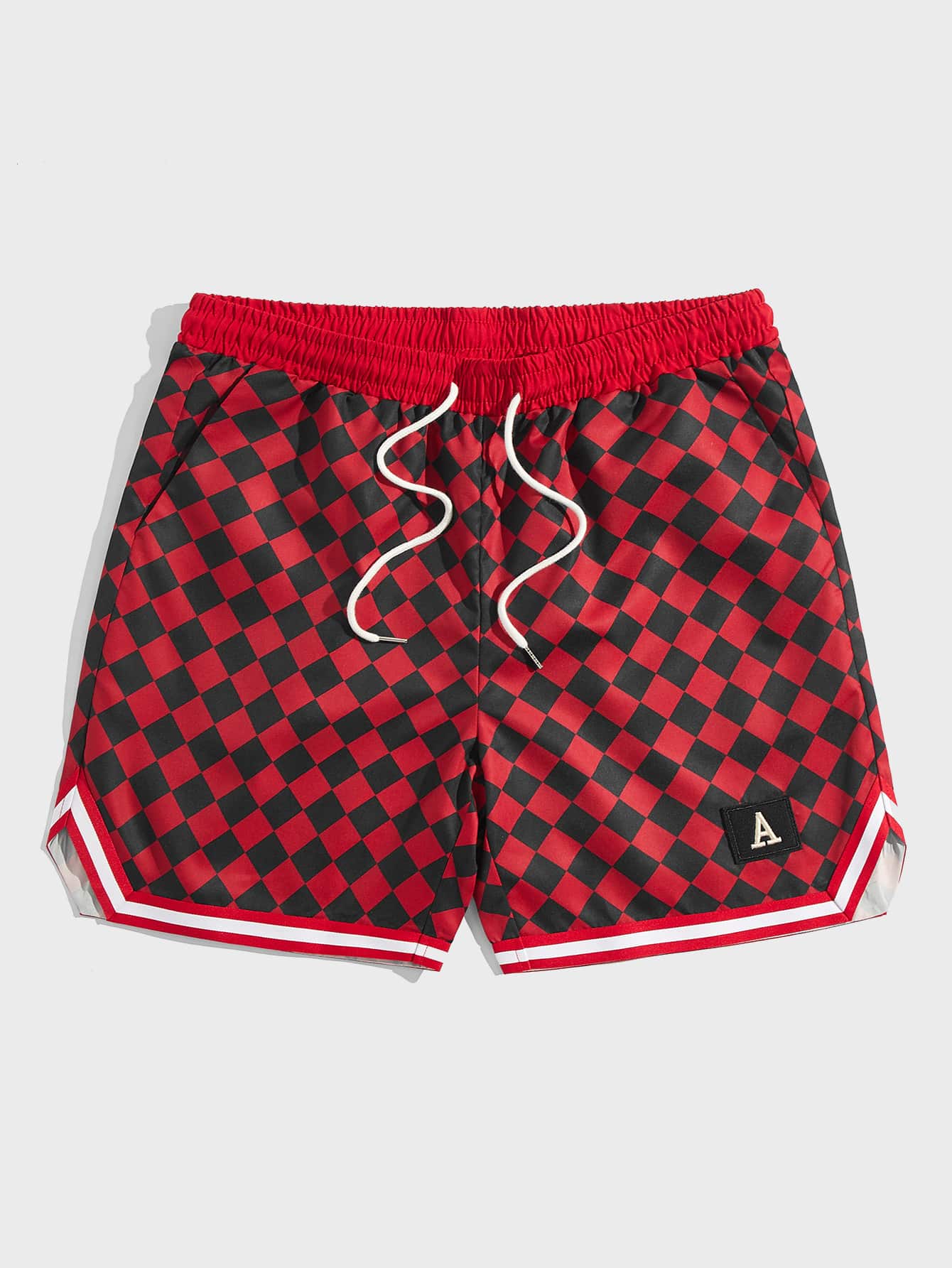 Guys Checker Print Striped Trim Drawstring Waist Shorts