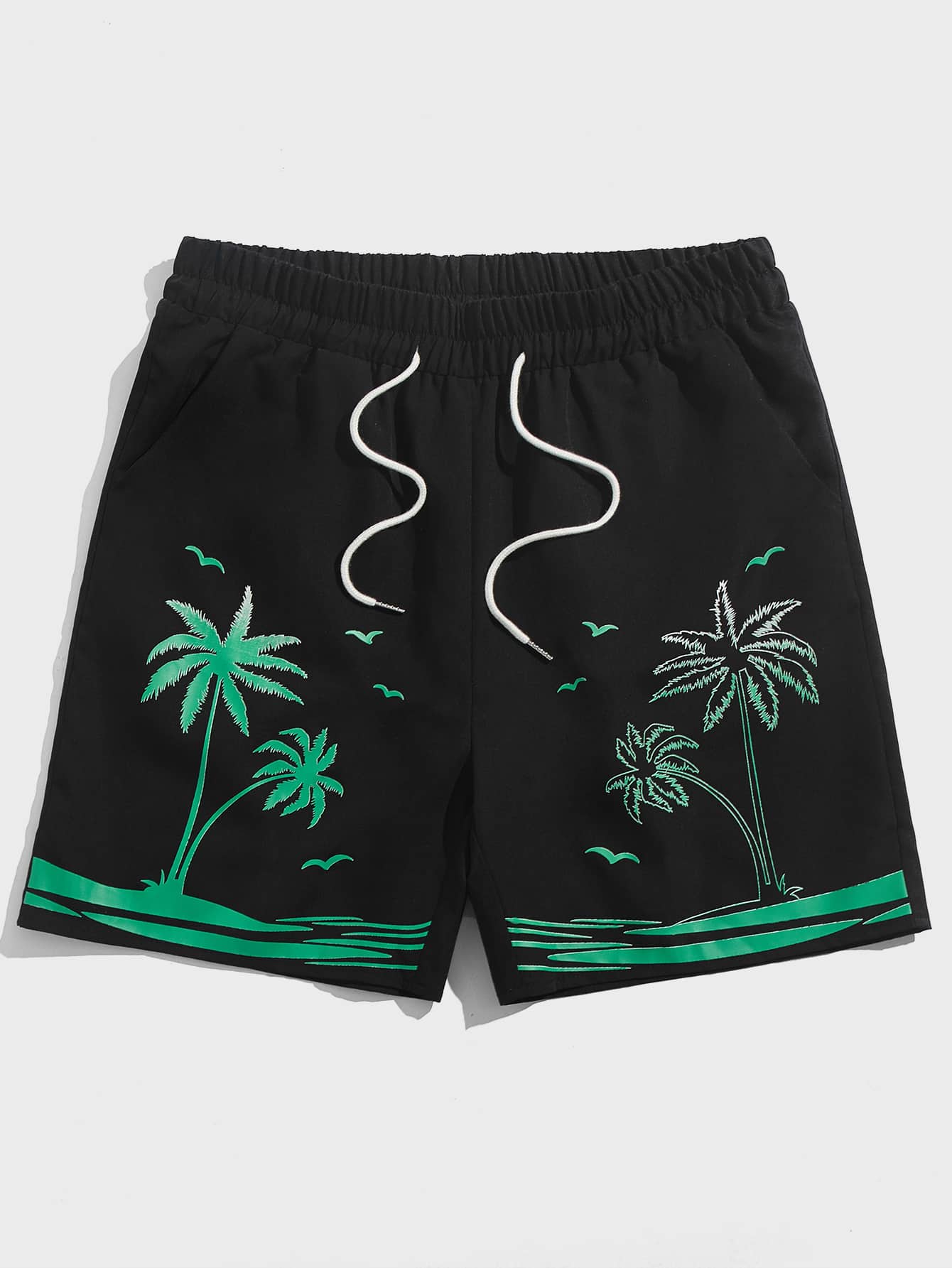 Guys Coconut Tree Print Drawstring Waist Shorts
