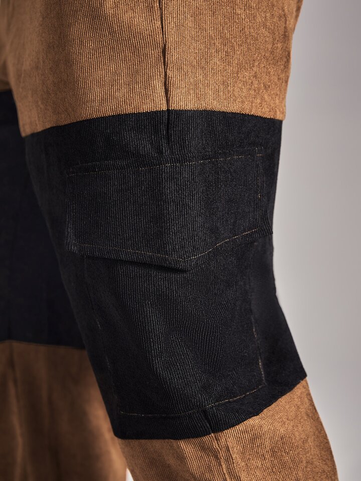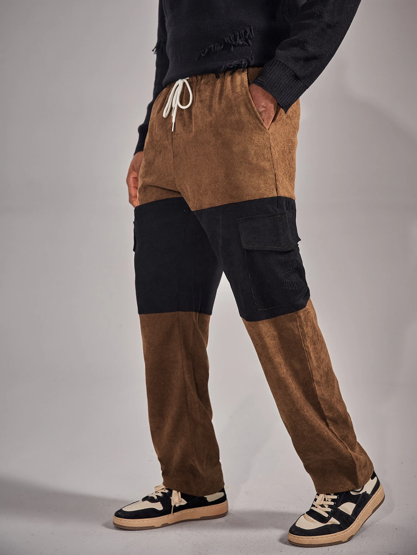 Guys Color-block Drawstring Waist Flap Pocket Corduroy Pants