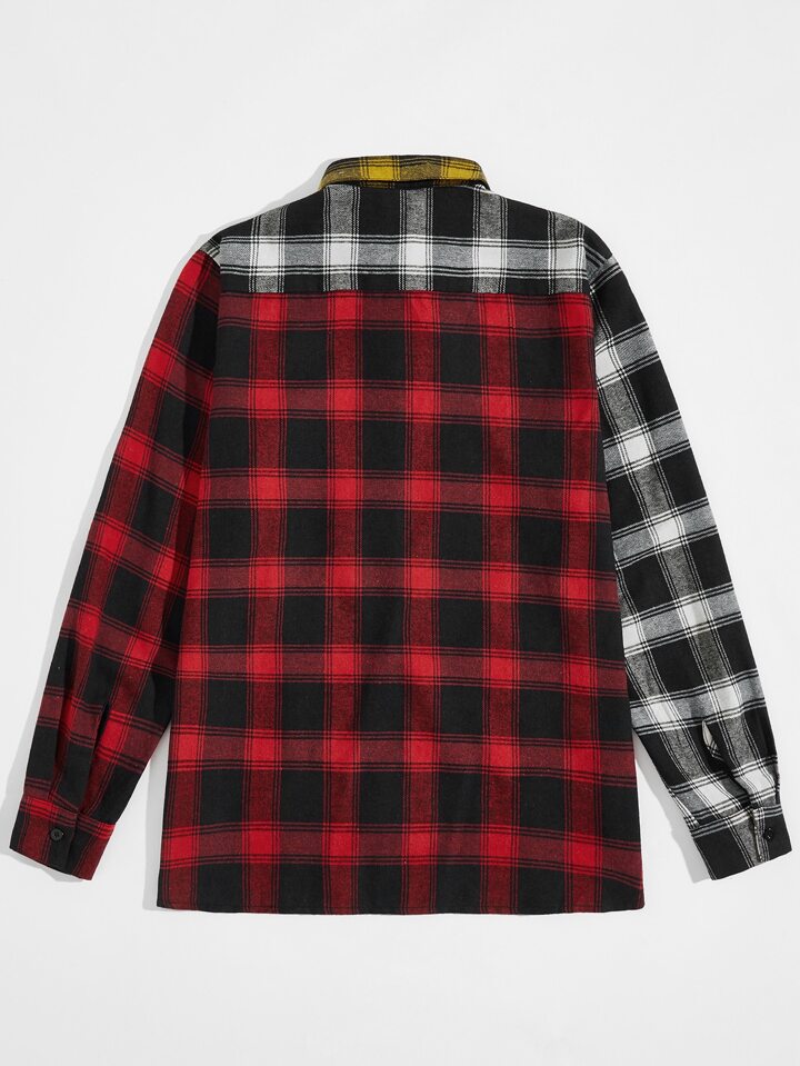 Guys Color-block Plaid Pocket Front Shirt