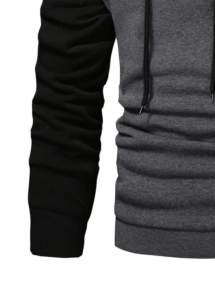 Guys Colorblock Raglan Sleeve Patched Detail Drawstring Hoodie
