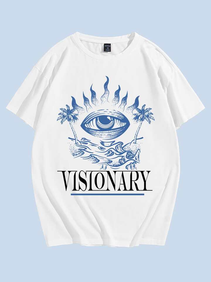 Guys Cotton Letter & Eye Graphic Tee