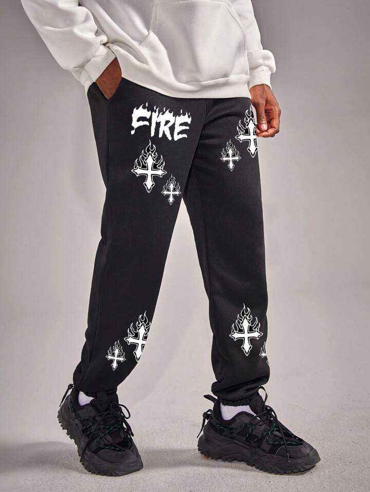 Guys Cross Letter Graphic Drawstring Waist Sweatpants