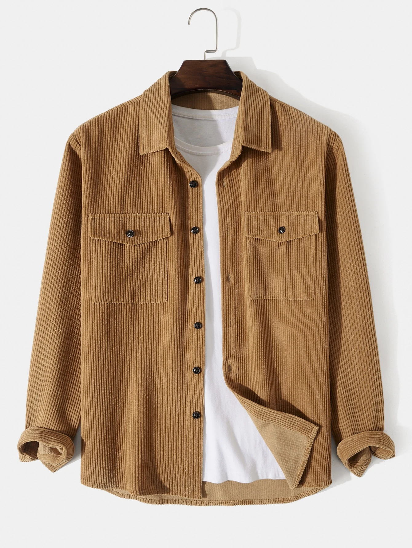 Guys Flap Pocket Button Through Corduroy Coat Without Tee