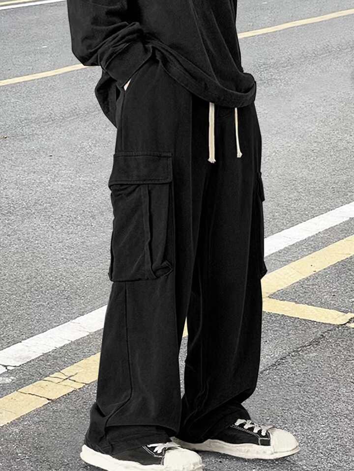 Guys Flap Pocket Side Drawstring Waist Sweatpants