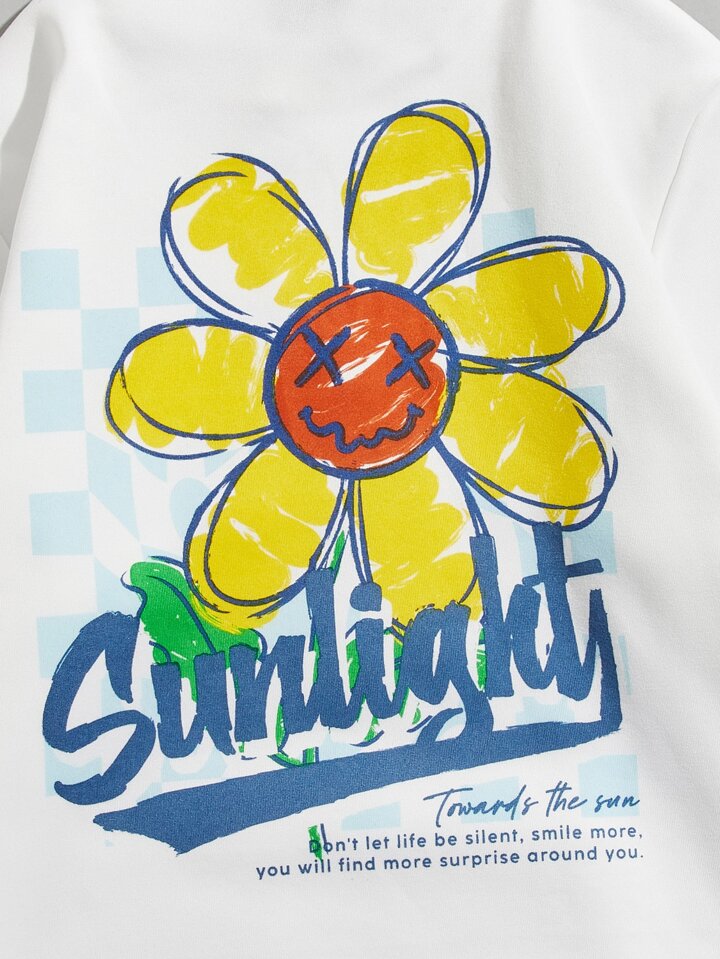 Guys Floral & Slogan Graphic Kangaroo Pocket Drawstring Hoodie