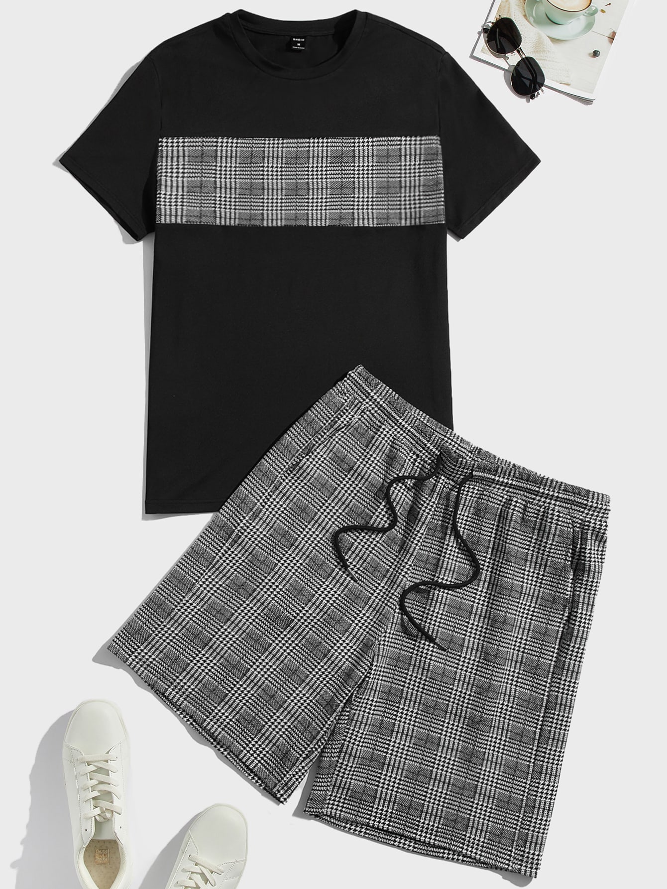Guys Houndstooth Print Tee & Drawstring Waist Shorts