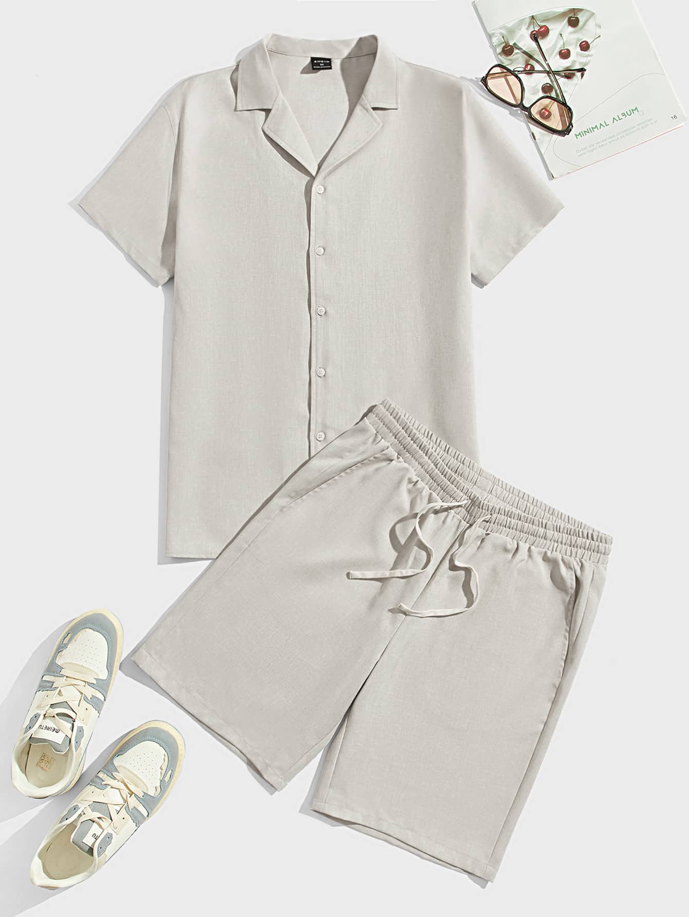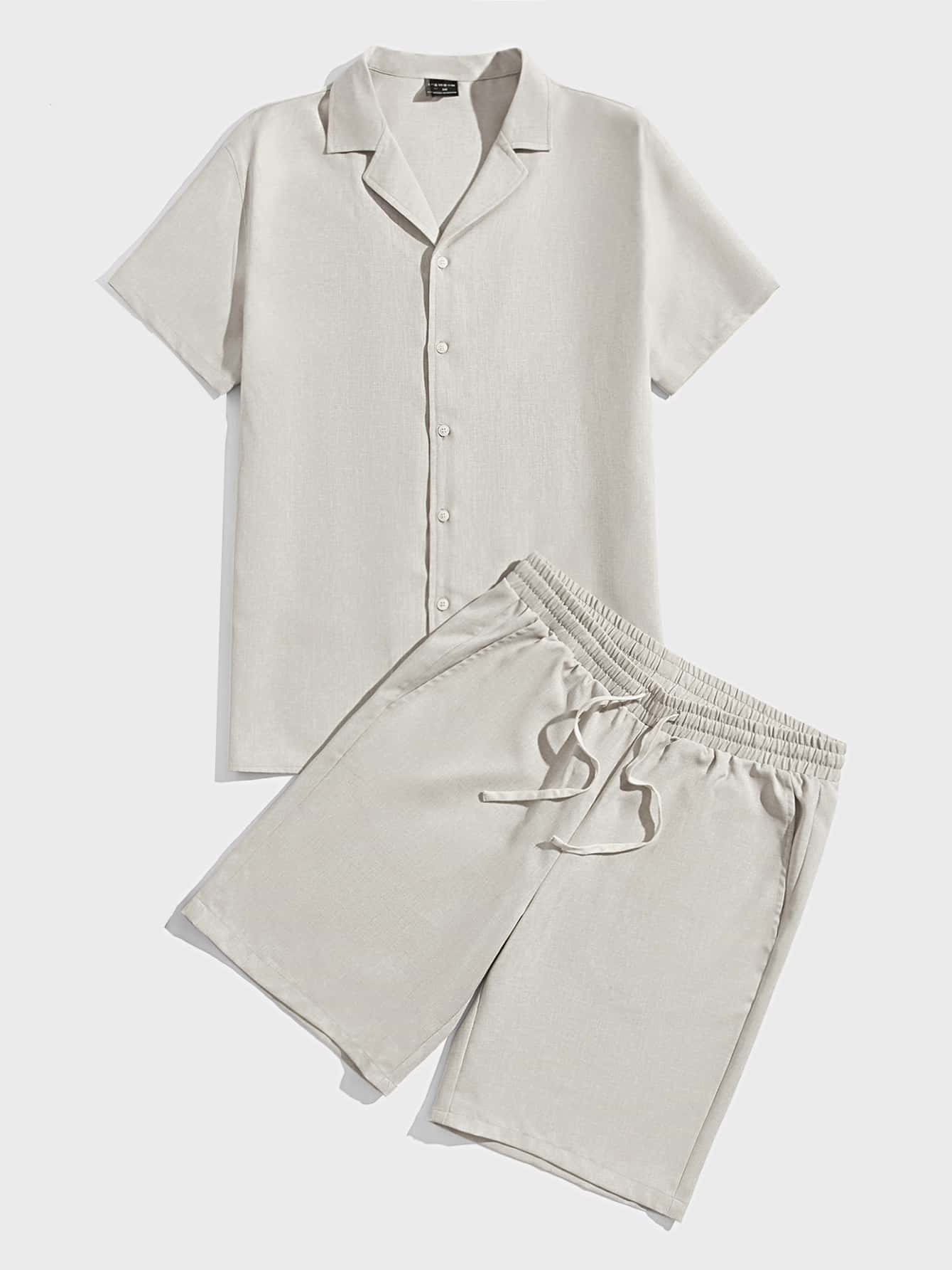 Guys Lapel Neck Shirt & Drawstring Waist Shorts
