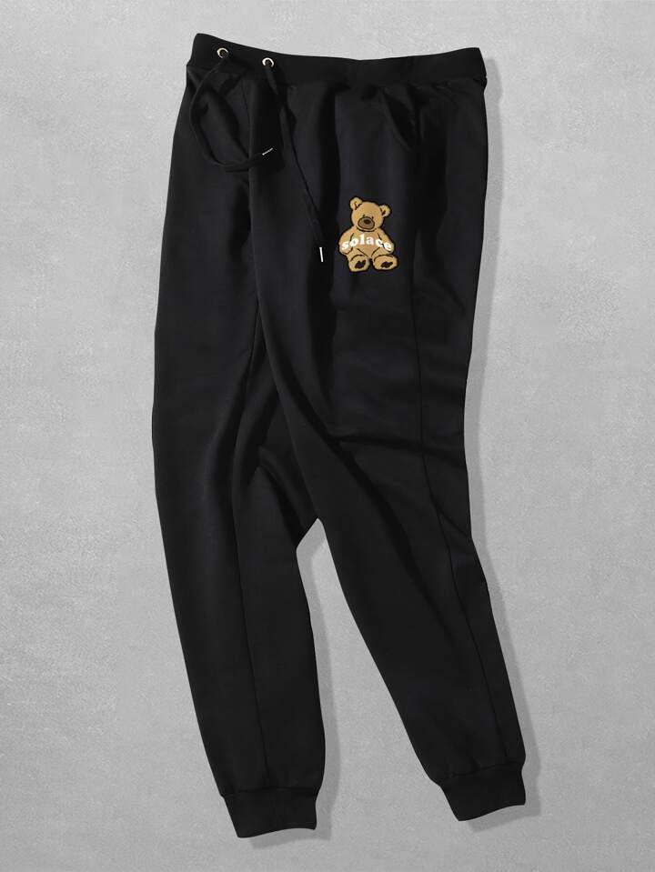 Guys Letter Cartoon Bear Graphic Drawstring Sweatpants