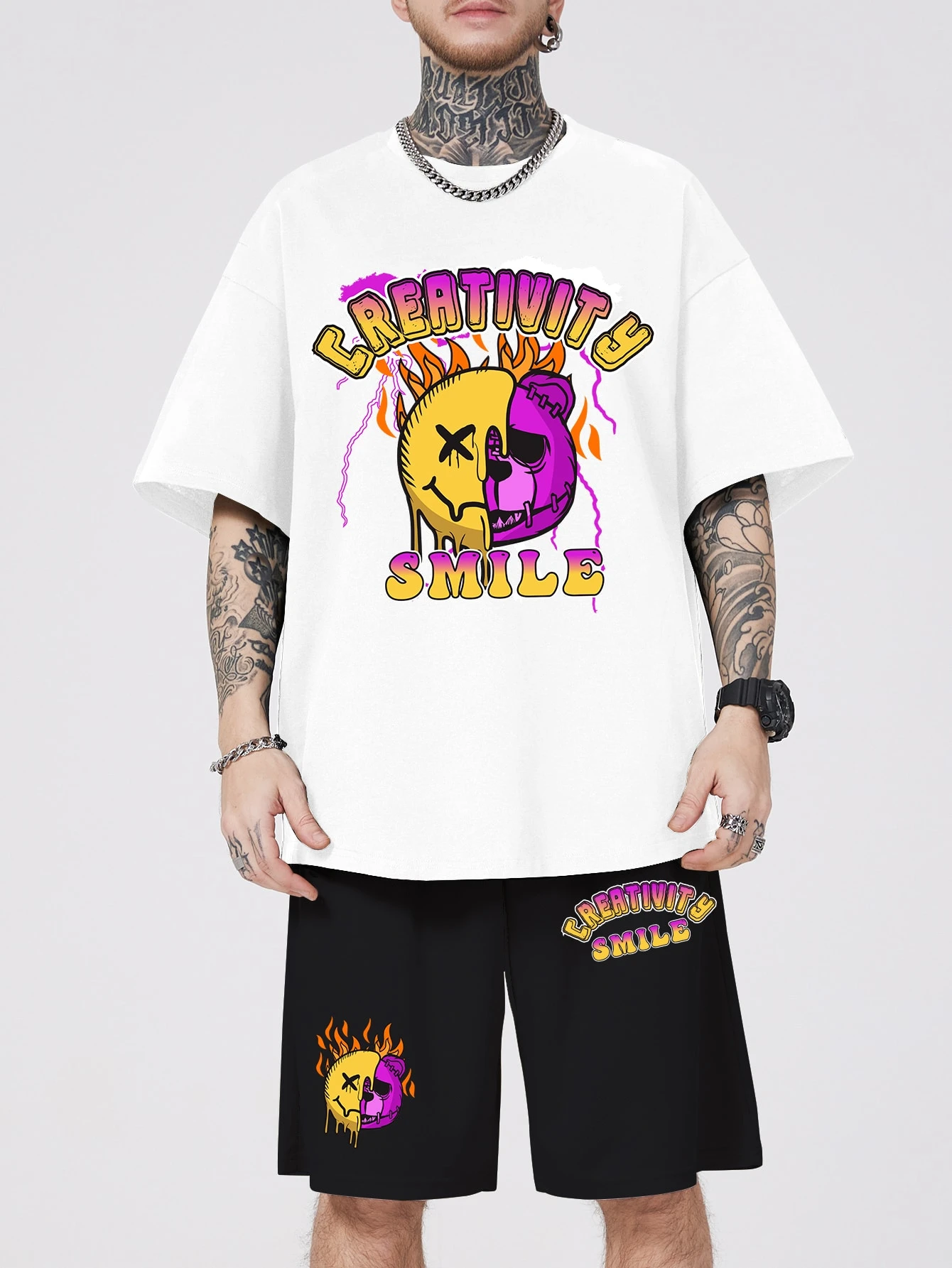 Guys Letter & Cartoon Graphic Tee & Drawstring Waist Shorts