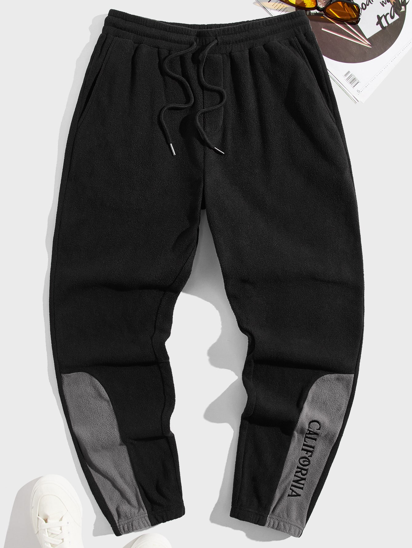 Guys Letter Embroidery Contrast Panel Drawstring Waist Sweatpants
