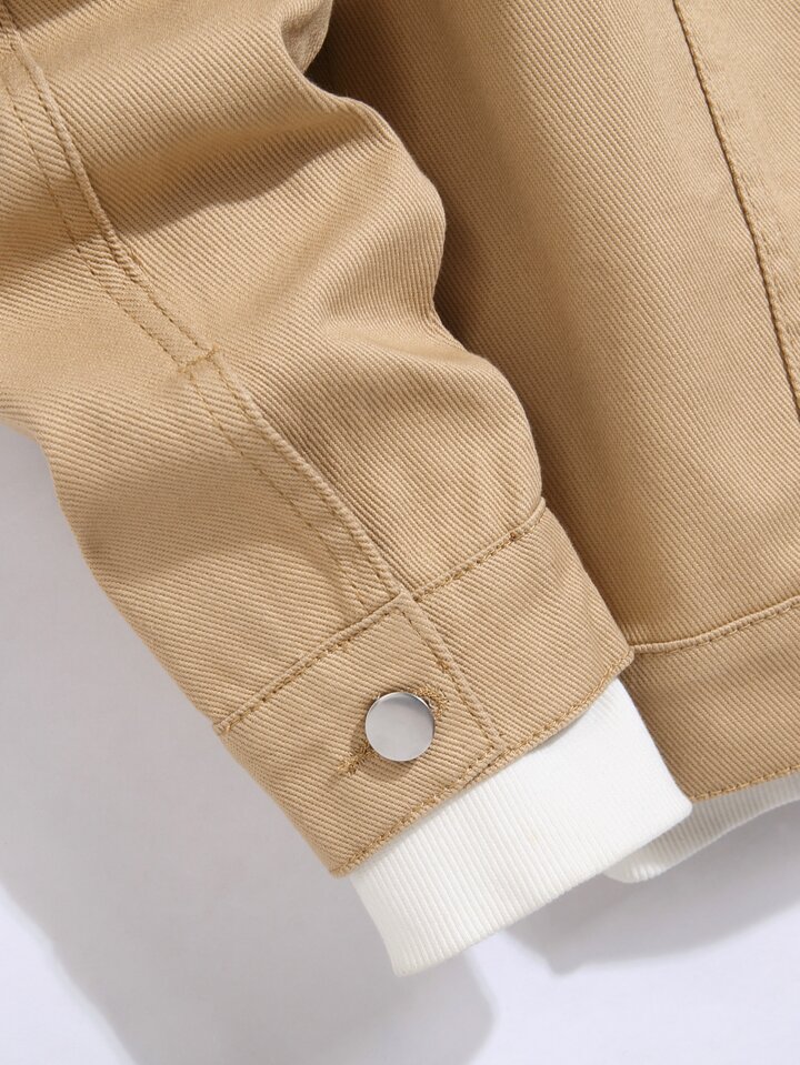 Guys Letter & Fire Print Denim Jacket Without Hoodie