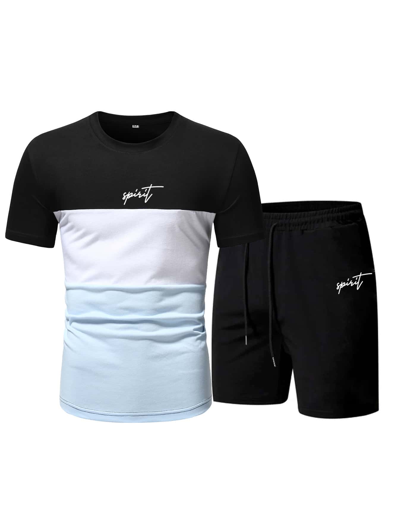 Guys Letter Graphic Colorblock Tee & Drawstring Waist Shorts
