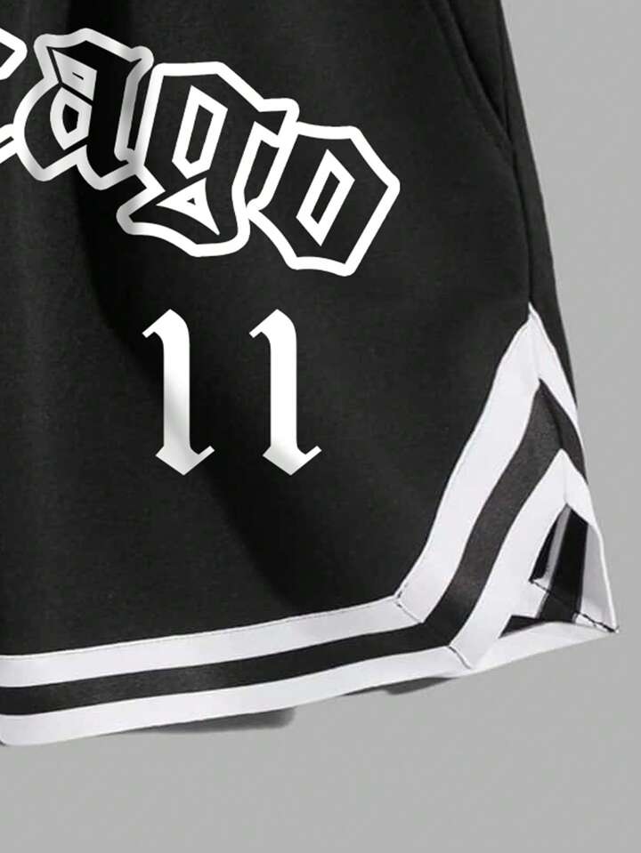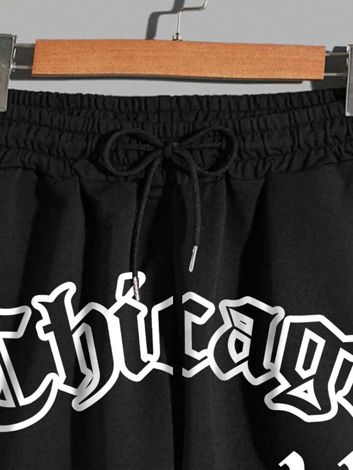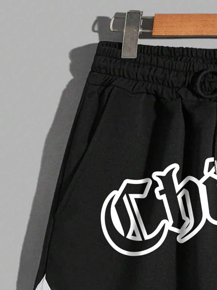 Guys Letter Graphic Contrast Tape Drawstring Waist Shorts