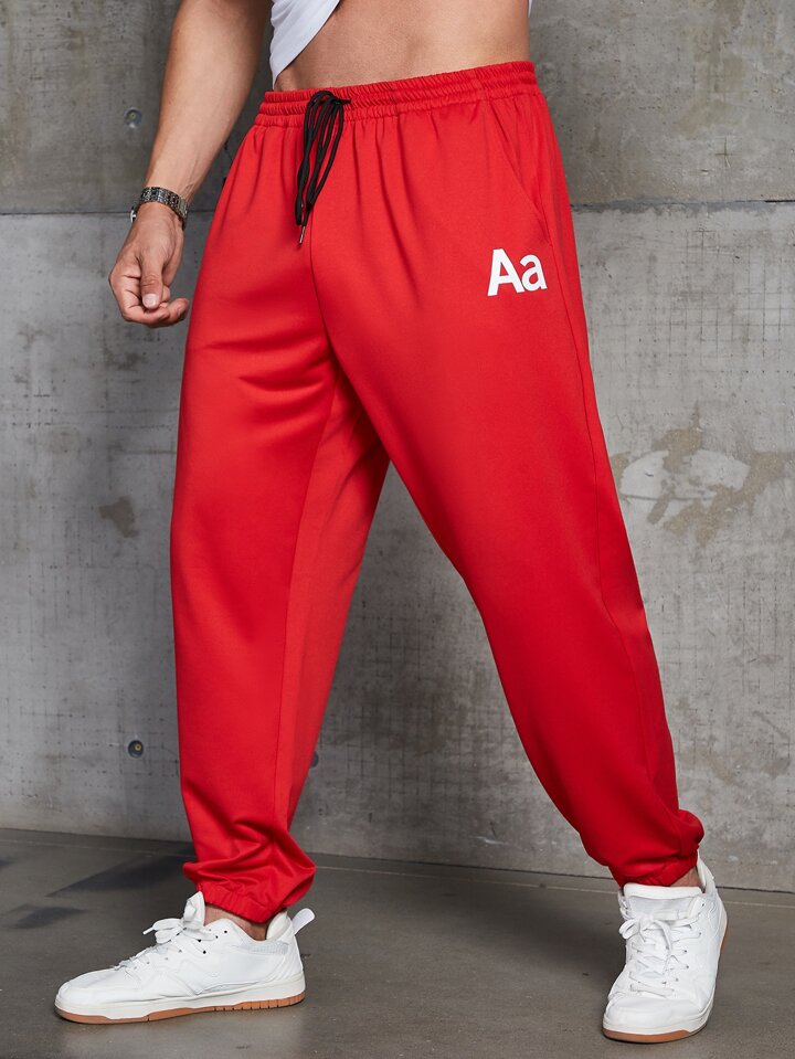 Guys Letter Graphic Drawstring Waist Sweatpants
