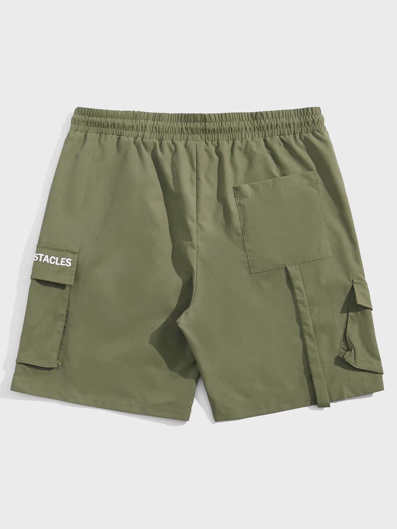 Guys Letter Graphic Flap Pocket Buckled Drawstring Waist Shorts