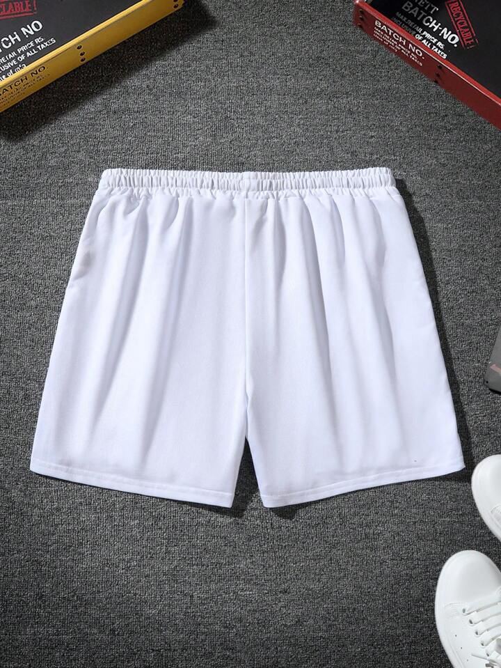 Guys Letter Graphic Striped Trim Drawstring Waist Shorts
