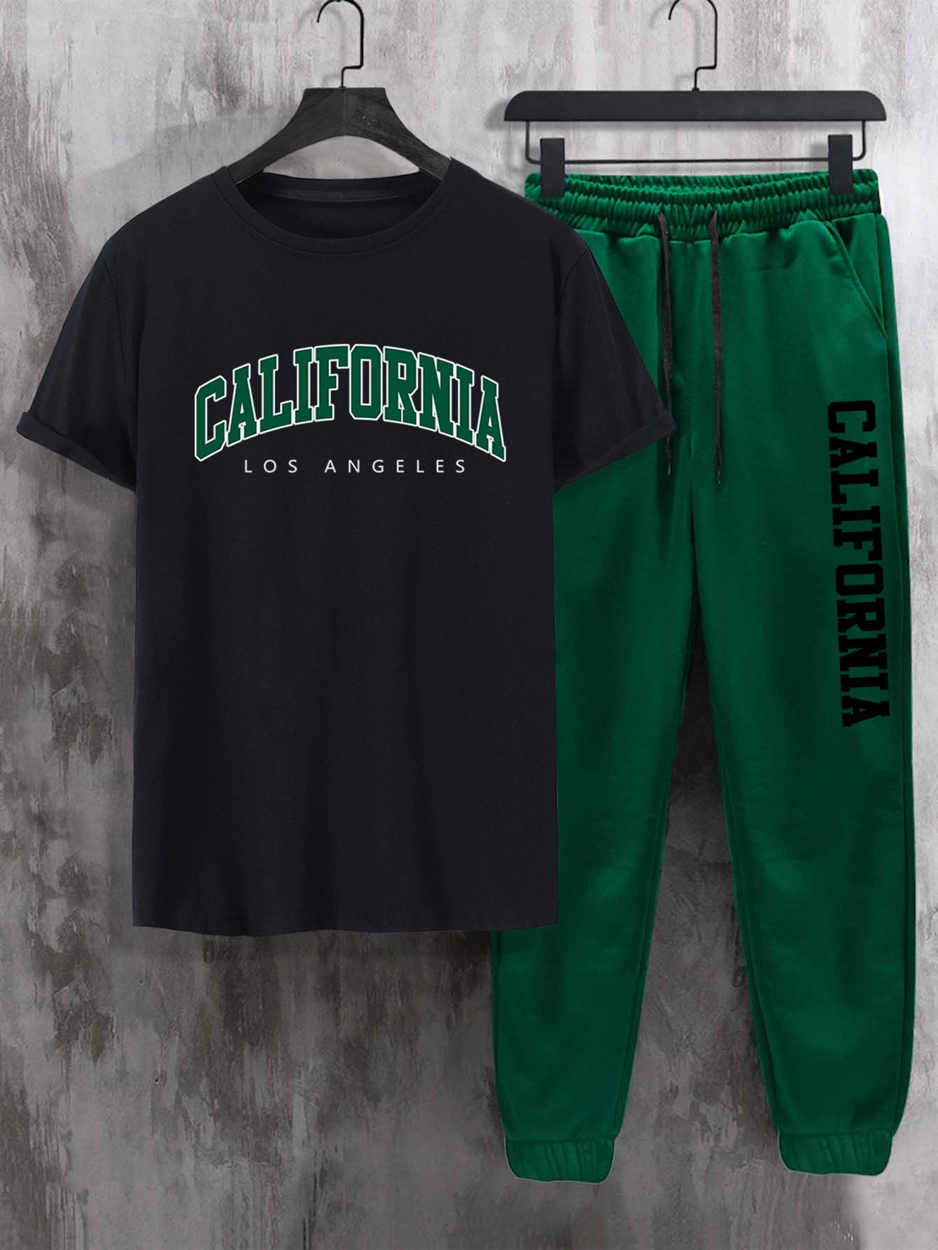 Guys Letter Graphic Tee & Drawstring Waist Sweatpants