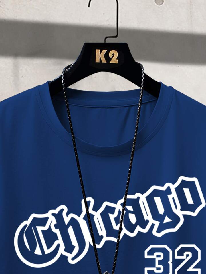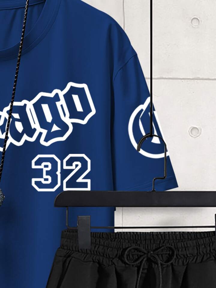 Guys Letter Graphic Tee & Striped Trim Shorts