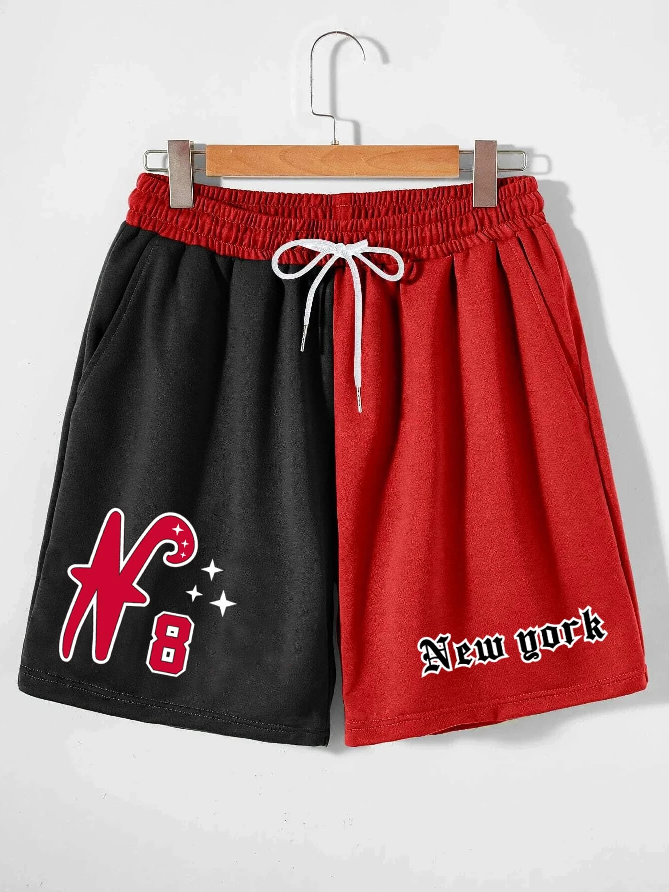 Guys Letter Graphic Two Tone Drawstring Waist Shorts