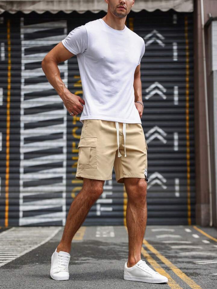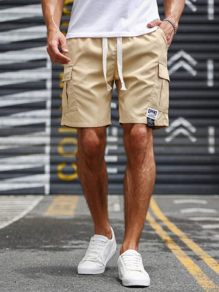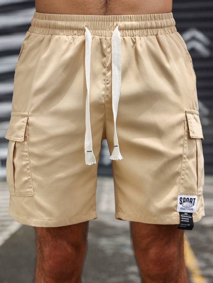 Guys Letter Patched Flap Pocket Drawstring Waist Shorts