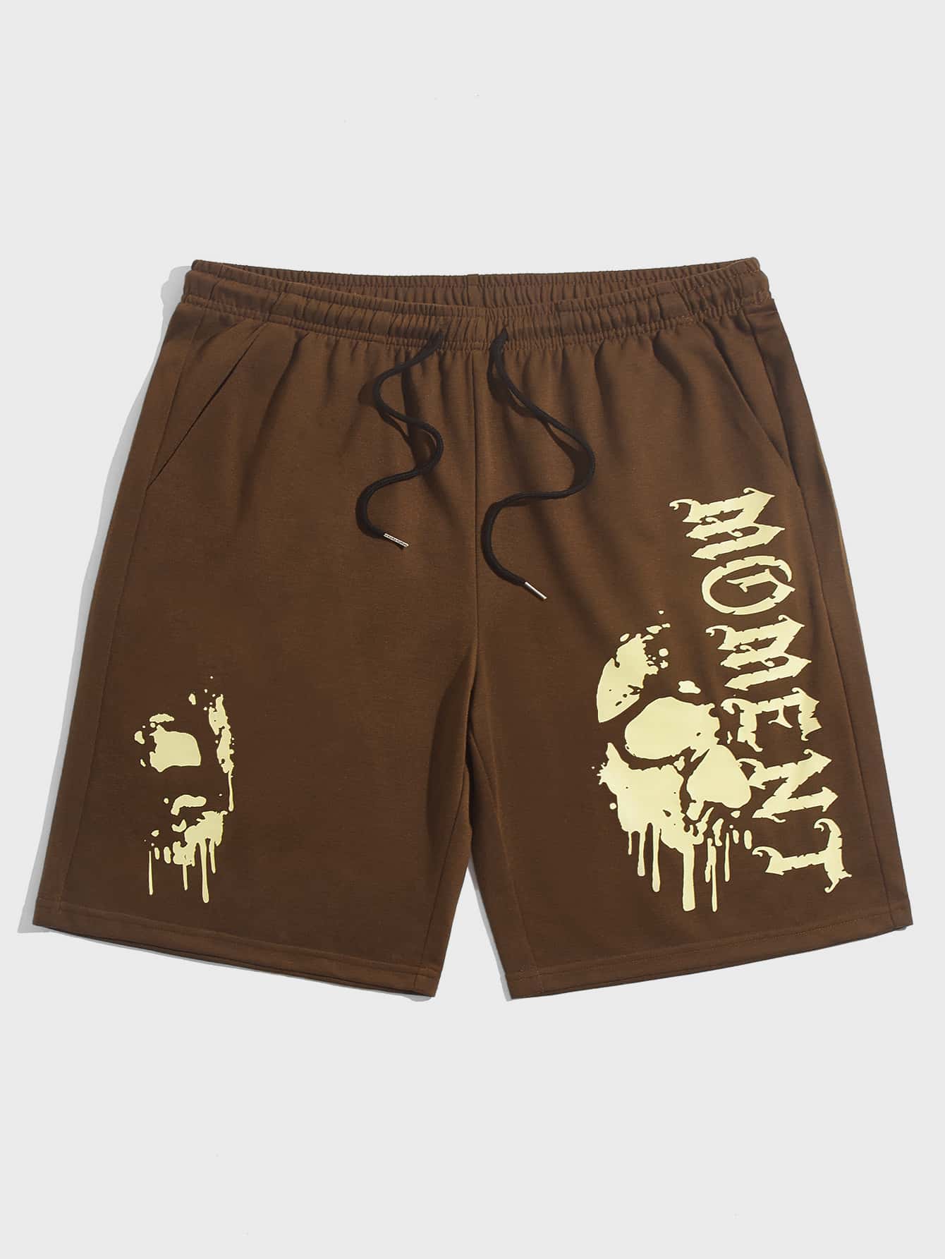 Guys Letter Skull Graphic Drawstring Waist Shorts
