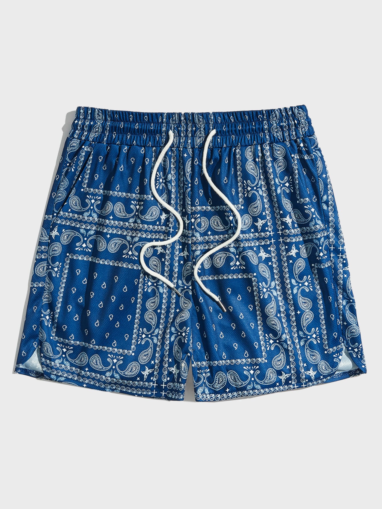 Guys Paisley Scarf Print Drawstring Waist Shorts