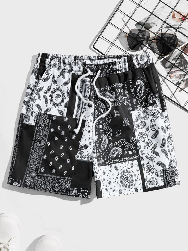Guys Paisley Scarf Print Drawstring Waist Shorts