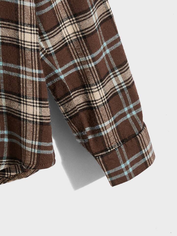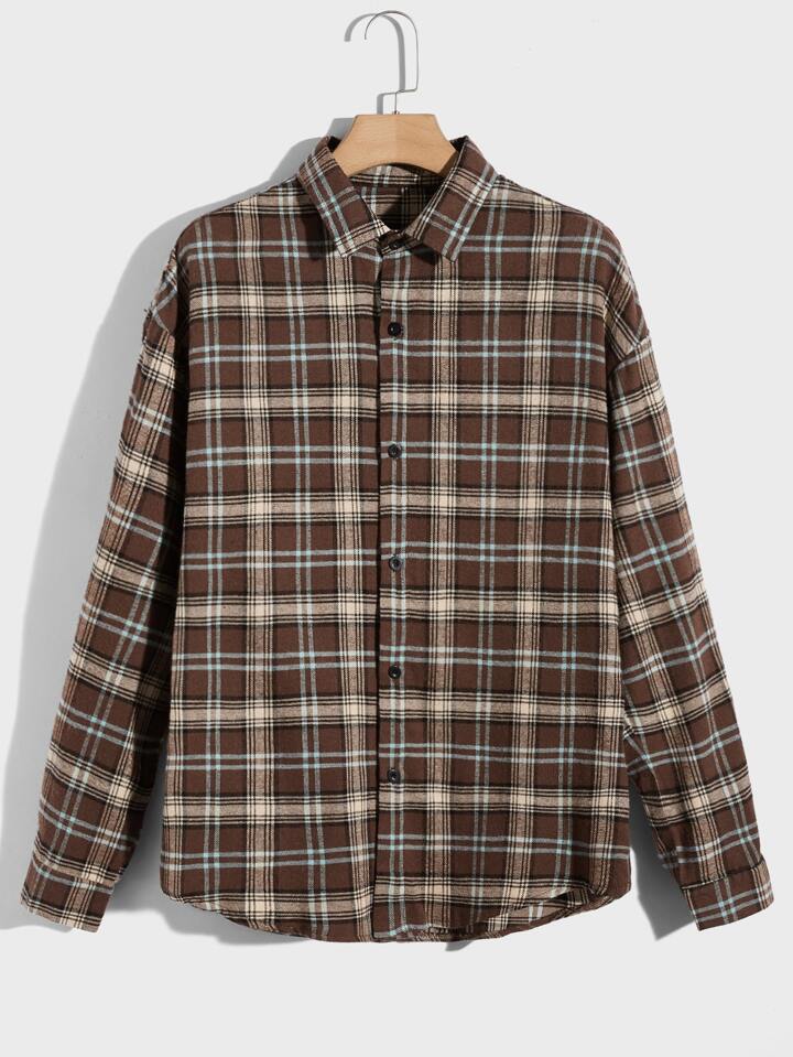 Guys Plaid Print Drop Shoulder Shirt