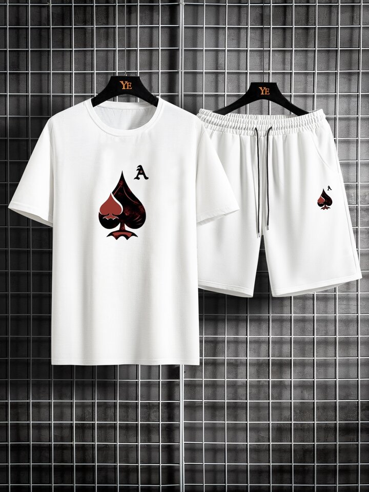 Guys Playing Card Print Tee & Drawstring Waist Shorts