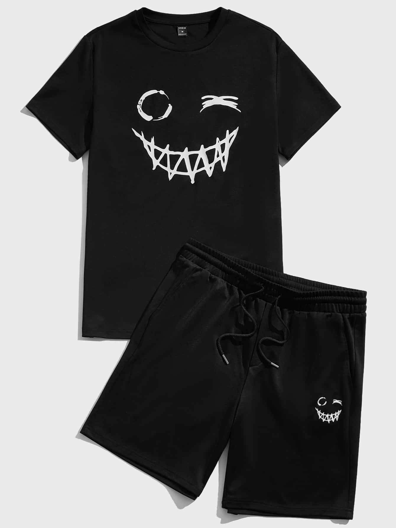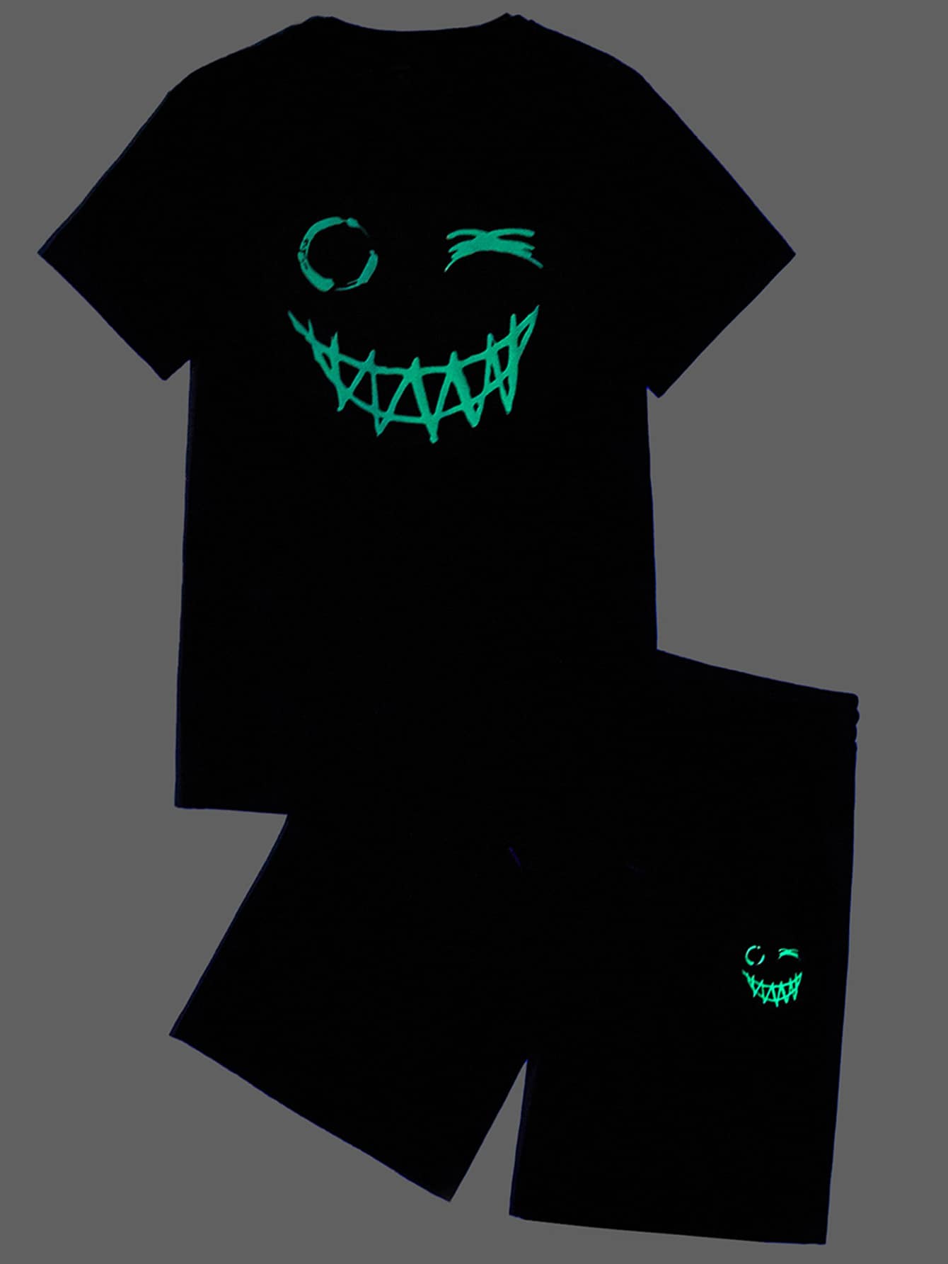 Guys Reflective Cartoon Graphic Tee & Drawstring Waist Shorts