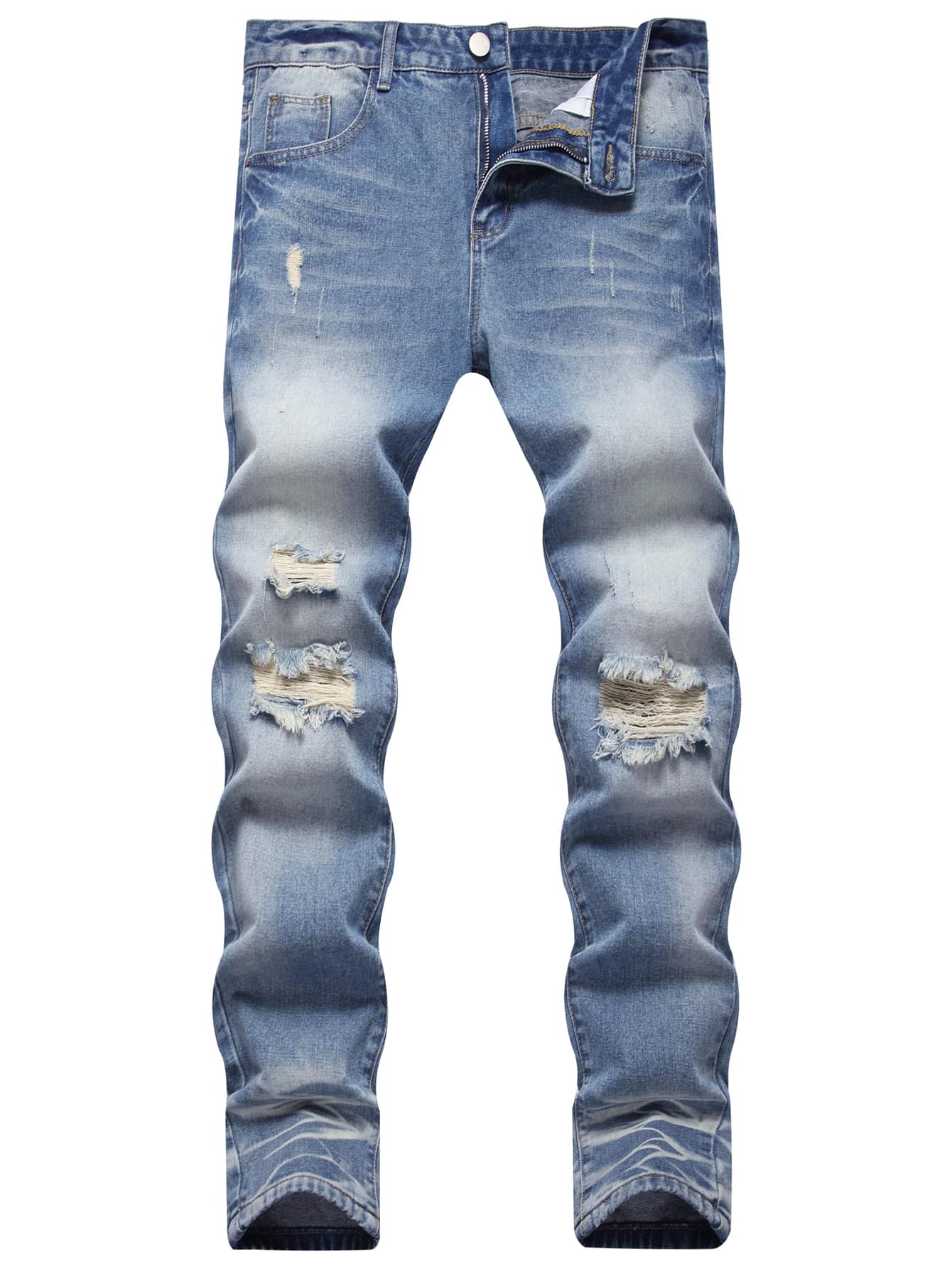 Guys Ripped Frayed Bleach Wash Skinny Jeans