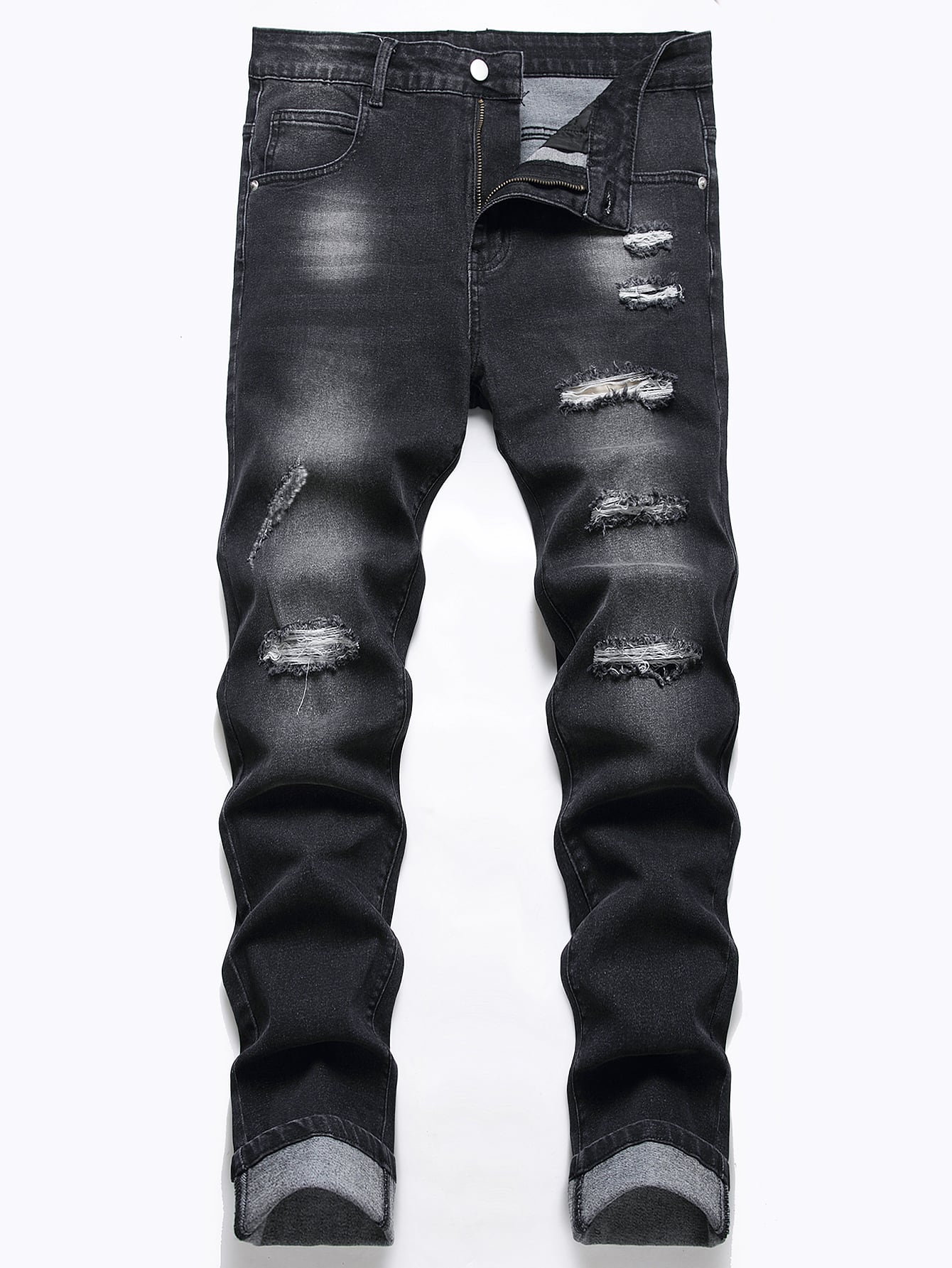 Guys Ripped Frayed Cat Scratch Skinny Jeans