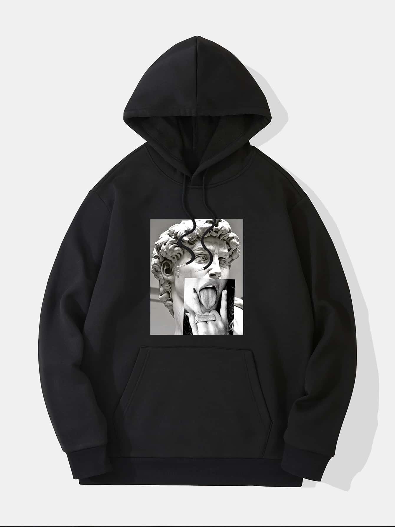 Guys Sculpture And Figure Graphic Kangaroo Pocket Drawstring Thermal Lined Hoodie