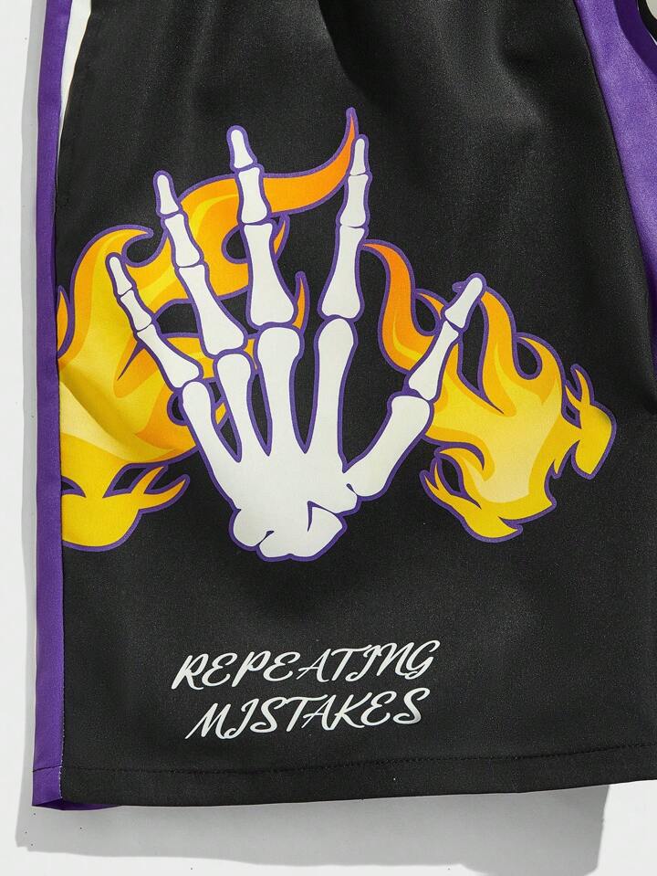 Guys Skull & Letter Graphic Two Tone Drawstring Waist Shorts