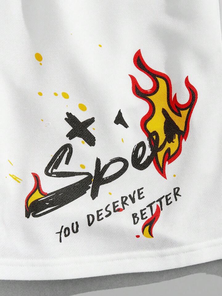 Guys Slogan Graphic Drawstring Waist Shorts