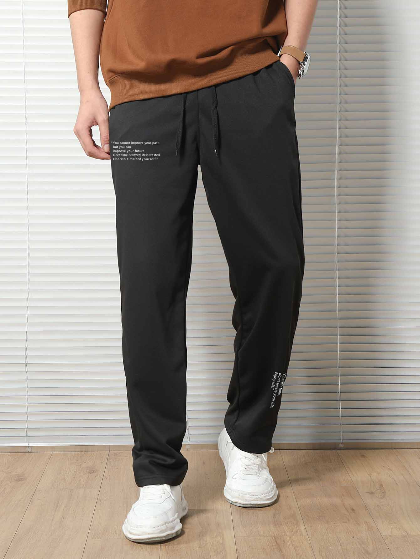 Guys Slogan Graphic Drawstring Waist Sweatpants