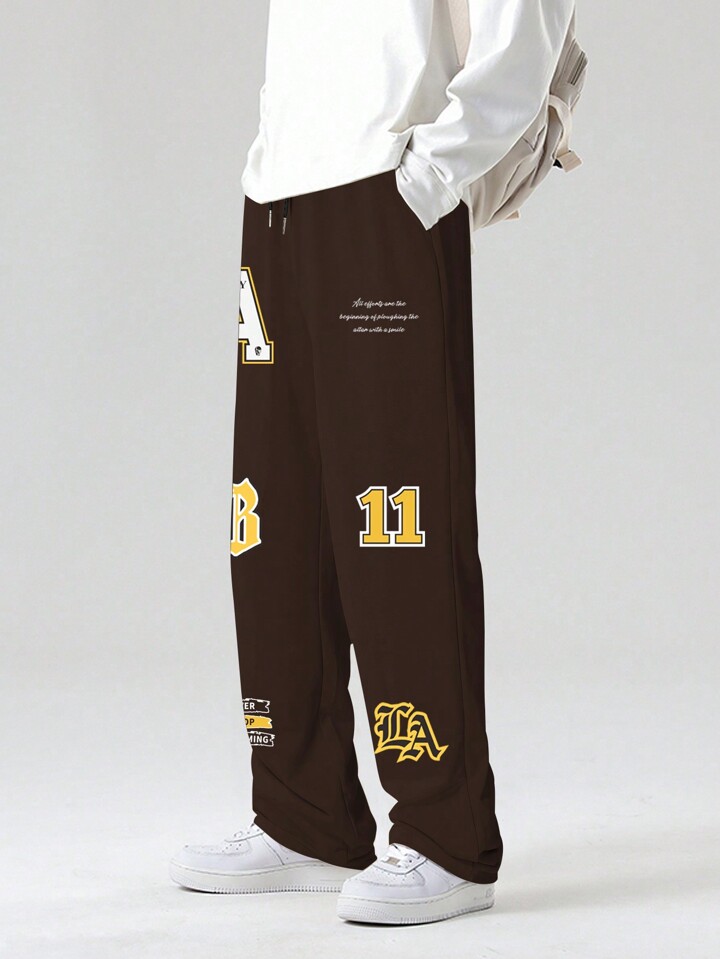 Guys Slogan Graphic Drawstring Waist Sweatpants