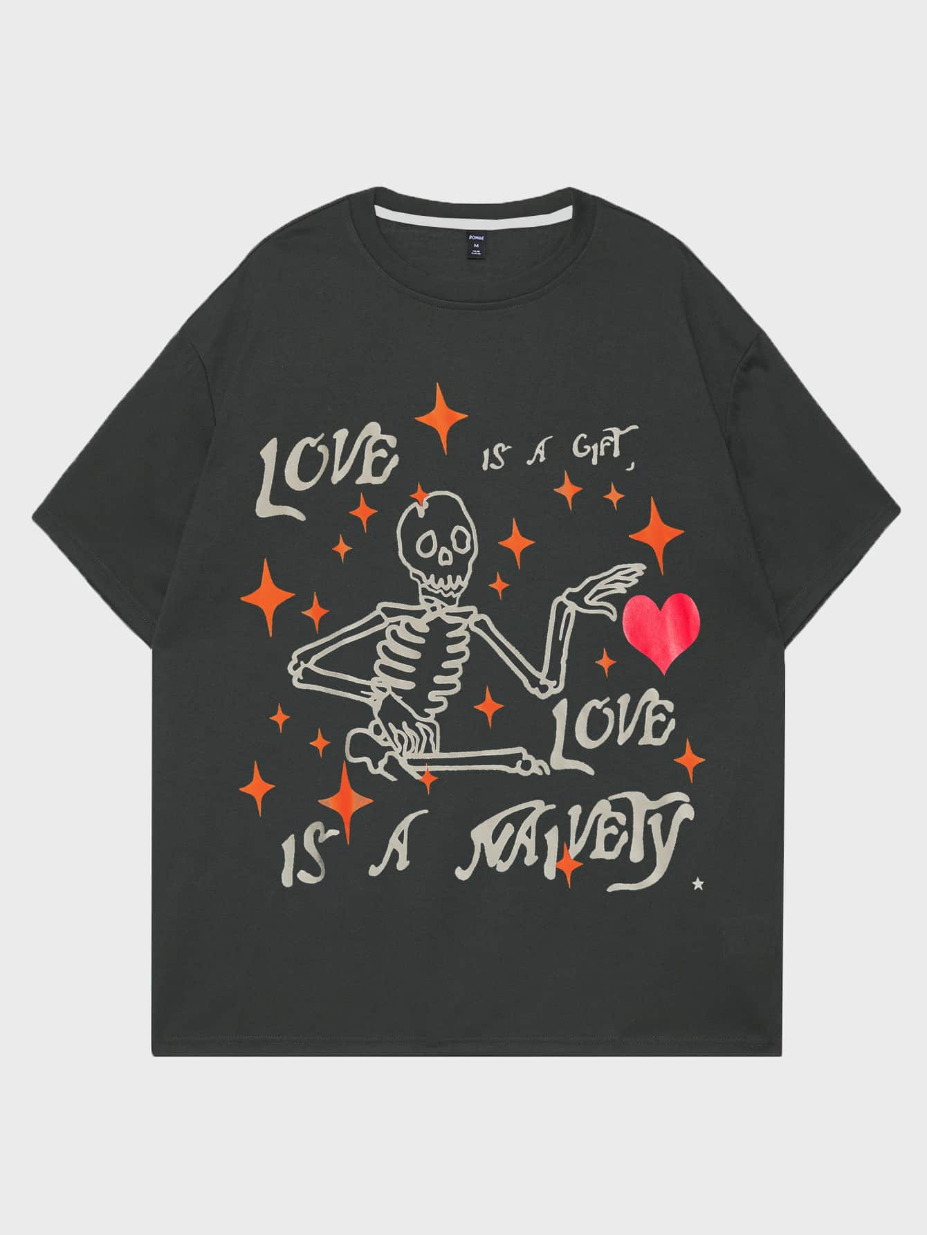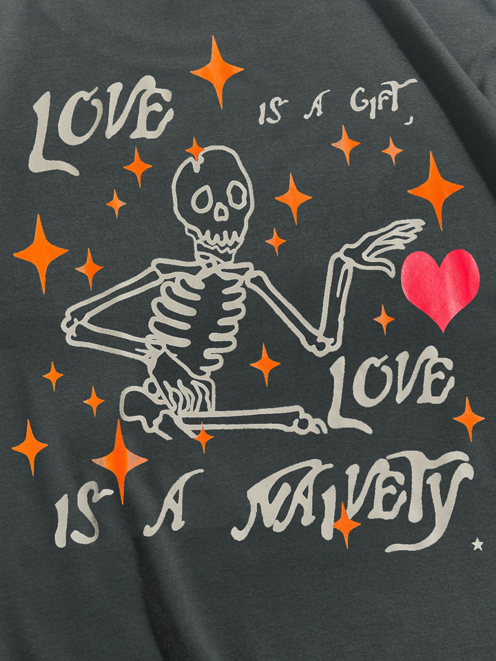 Guys Slogan & Skeleton Print Tee