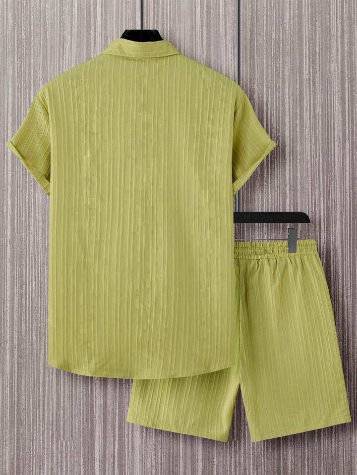 Guys Solid Button Up Shirt & Drawstring Waist Shorts Without Tee