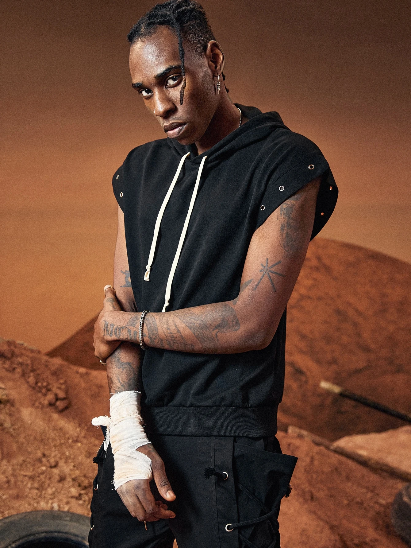 Guys Solid Grommet Eyelet Drawstring Hoodie