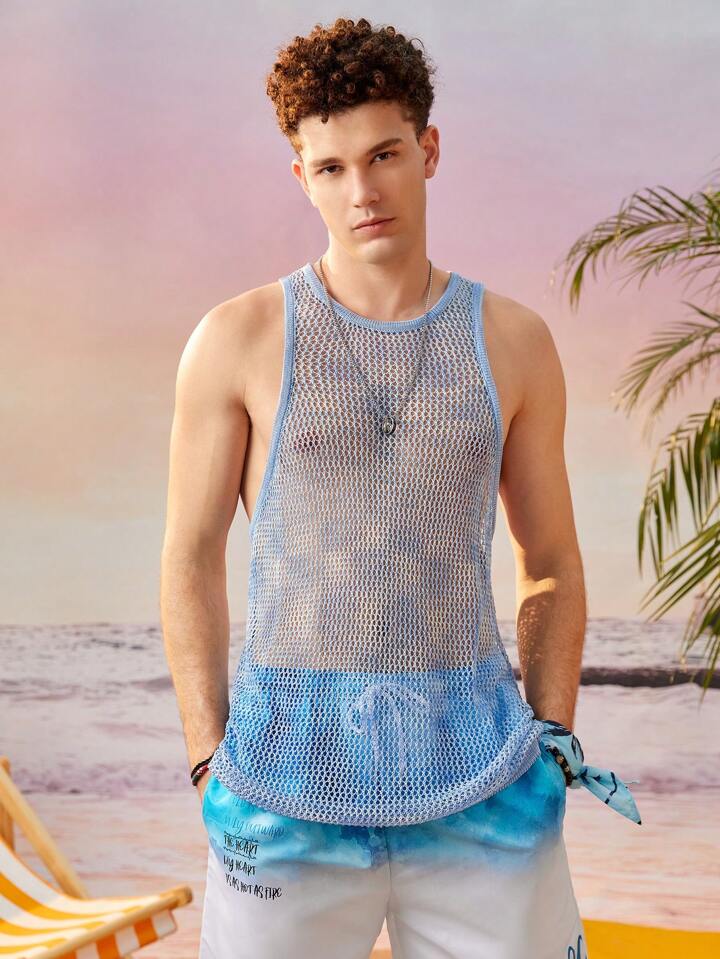 Guys Solid Pointelle Knit Sweater Vest